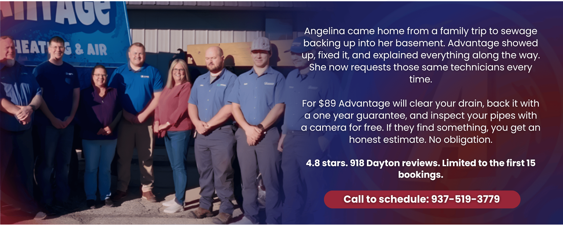 Right now Advantage is offering $89 drain clearing with a one year guarantee. Every job includes a free camera inspection of your pipes so you know exactly what you're dealing with. If they find something, you get an honest estimate. No pressure, no obligation.
