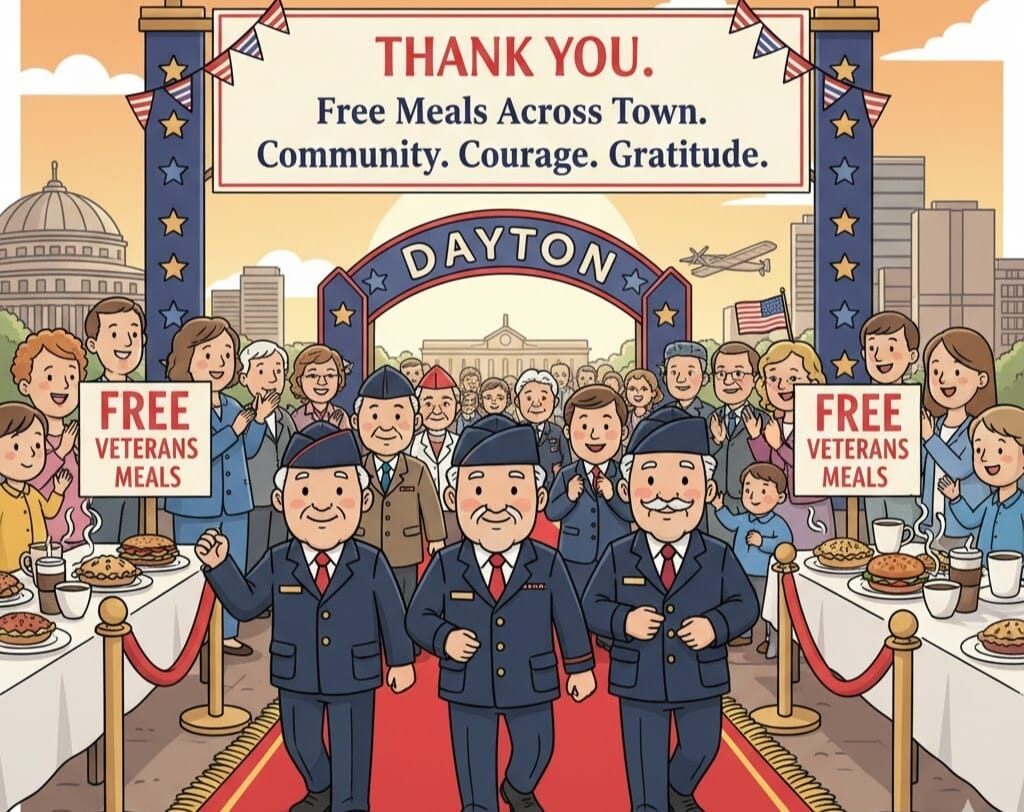 Dayton is coming together in the warmest way to say THANK YOU to our veterans with free meals across town. This special Veterans Day, local spots are opening their doors and hearts to honor those who’ve served, creating moments of gratitude and community pride. It’s not just about the food—it’s about bringing neighbors together to celebrate courage, sacrifice, and the spirit that makes Dayton home. Whether you’re a veteran or simply want to show support, this is your chance to join something truly meaningful. Let’s fill tables, share smiles, and make this day unforgettable for our heroes! Read More