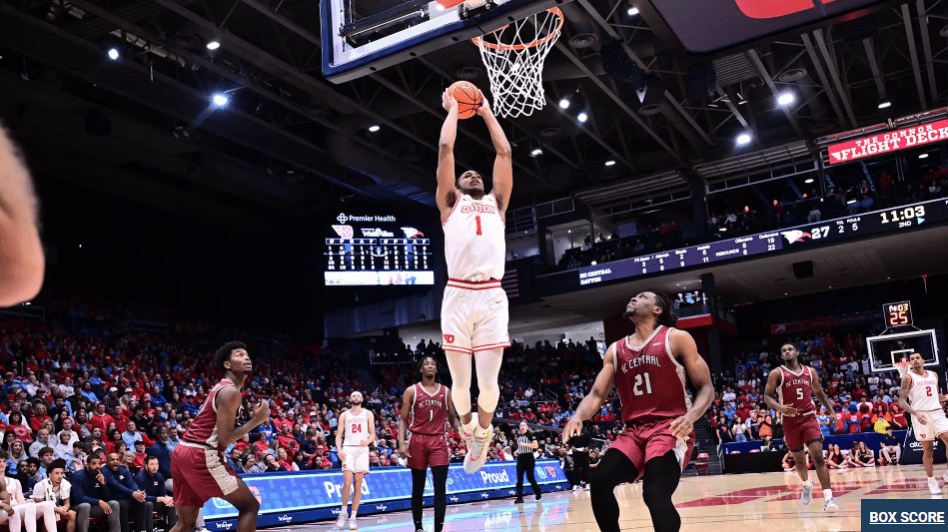 The Dayton Flyers dominated at home, defeating the North Carolina Central Eagles 74-55 on Nov. 22. Key players included De'Shayne Montgomery with 17 points, Malcolm Thomas with a career-high 12, and Amaël L’Etang adding 11. The Flyers took control early — leading 44-20 at halftime — and forced 18 turnovers while holding their opponent to just .373 shooting.